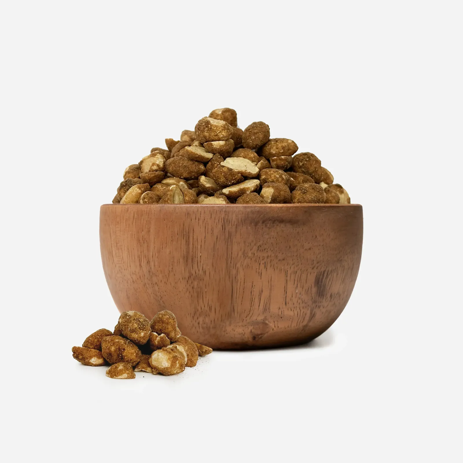 Arahide caramelizate cu condimente, care te cuceresc chiar de la prima mușcătură crocantă. Arahidele crocante, acoperite cu un strat fin de caramel, sunt completate de un amestec aromatic de cinci condimente și un strop de chili, care revigorează plăcut gustul. Dulce, condimentat și ușor picant într-o combinație perfect echilibrată. Gustarea ideală pentru film, petreceri sau pur și simplu într-un bol.