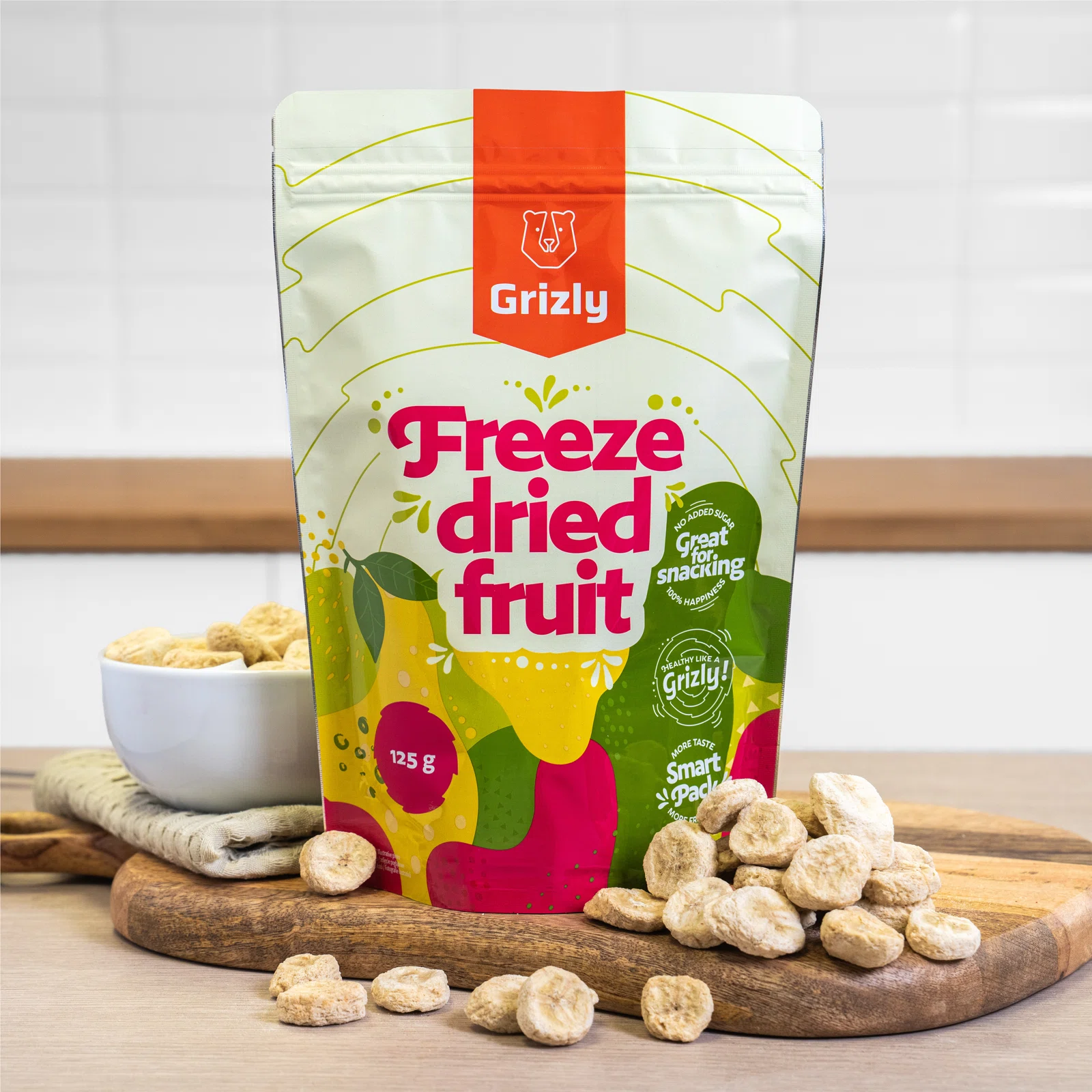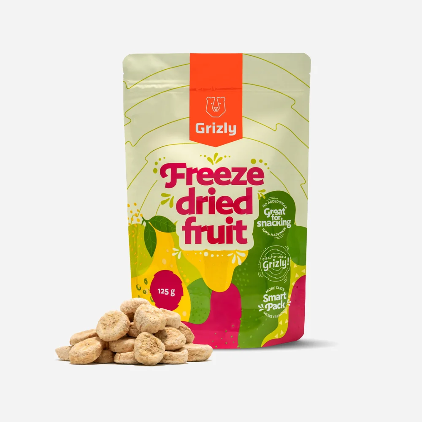Bucăți crocante de banane liofilizate, adică uscate prin congelare, pe care trebuie neapărat să le încercați! Puteți să vă bucurați de ele pe tot parcursul anului, deoarece datorită procesului special de uscare prin congelare profundă, au gustul de parcă ar fi fost culese recent, chiar dacă a trecut ceva timp de atunci. Feliile de banană uscate prin congelare sunt fabricate din fructe coapte și atent selecționate. Acestea sunt plăcut crocante și au un gust minunat. Sunt perfecte ca gustare simplă sau, dacă vă place să experimentați arome noi, le puteți folosi în prăjituri de casă, granola sau smoothie-uri colorate.
