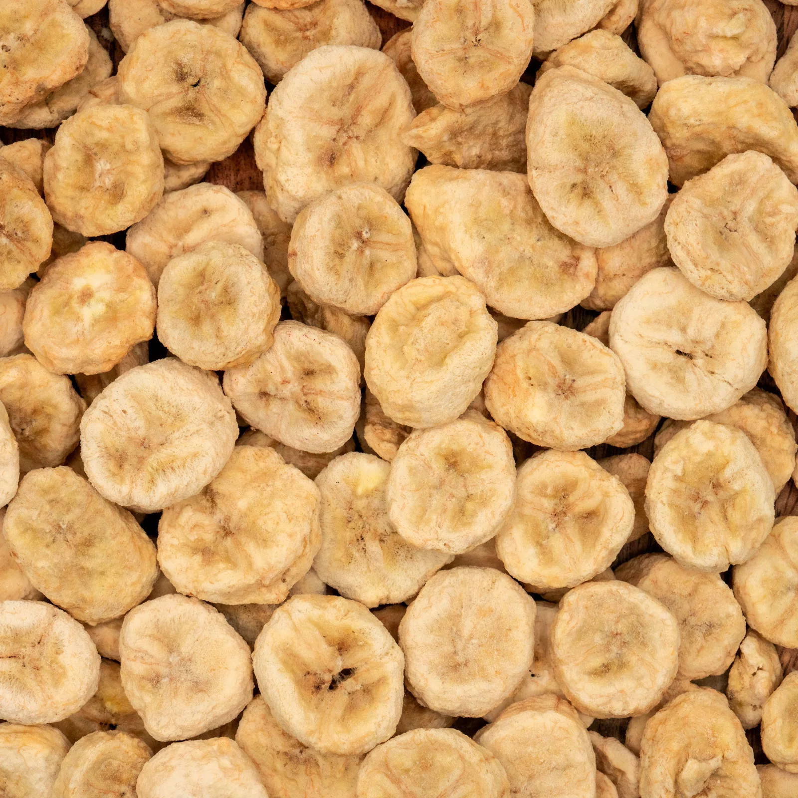 Felii crocante de banană, care au trecut prin procesul de liofilizare, sunt ideale, de exemplu, pentru prepararea prăjiturilor de casă, granola sau smoothie-uri colorate.