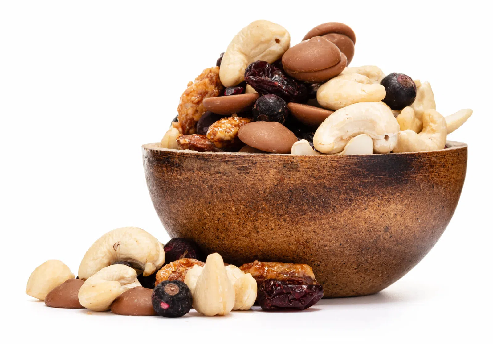 - combinație nutritivă de nuci, fructe uscate și ciocolată caramel