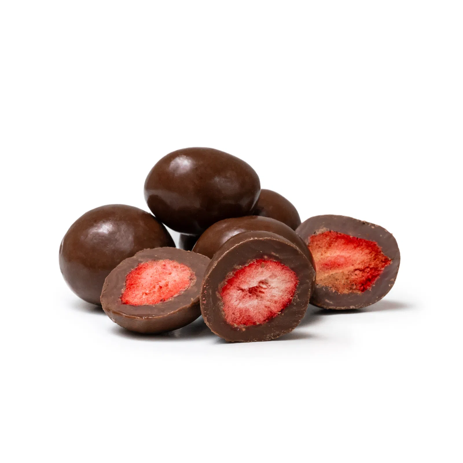 Căpșuni liofilizate acoperite cu ciocolată dulce cu lapte – adevărata delicatesă pentru toți iubitorii de dulce. Combinația perfectă dintre prospețimea fructelor și dulceața fină.
