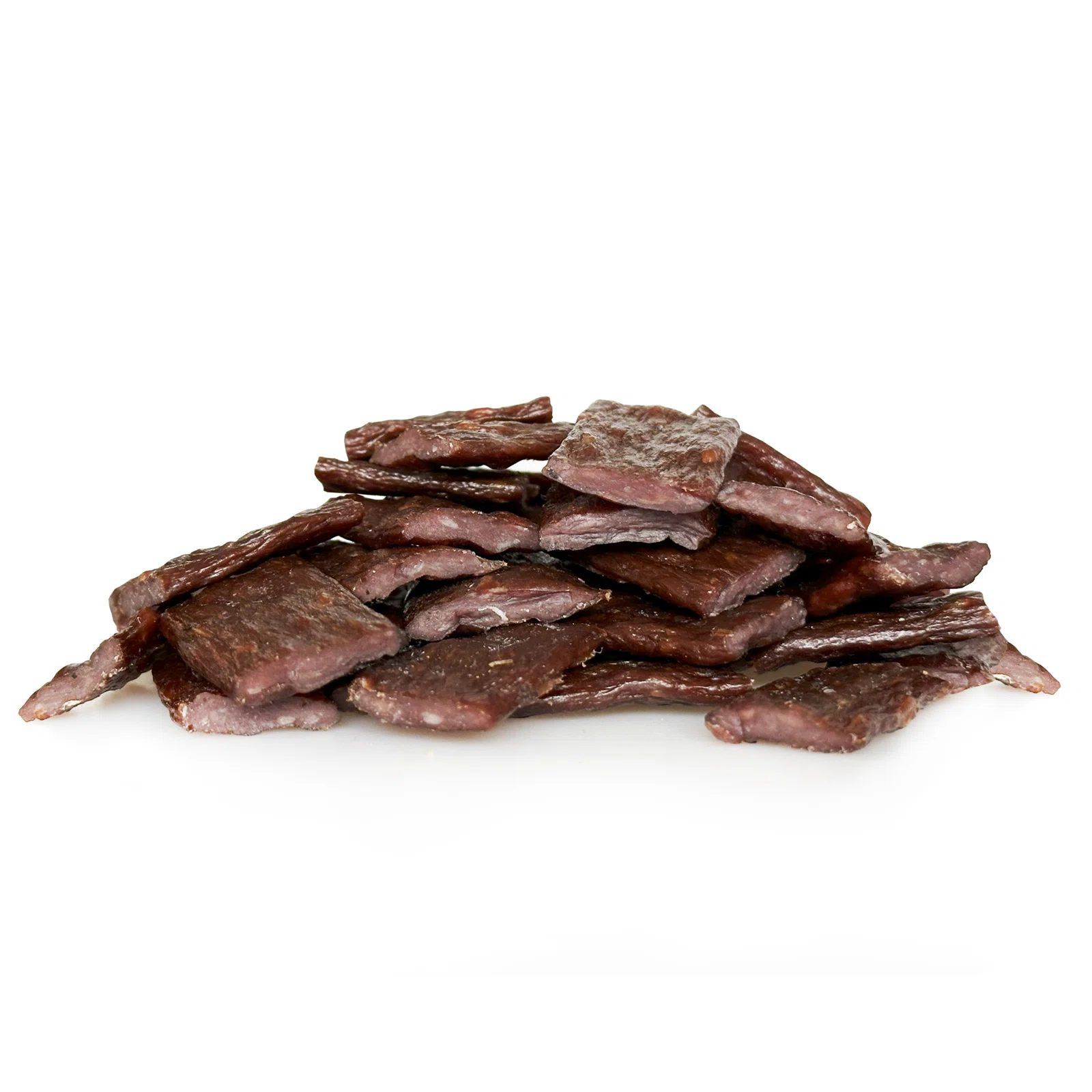 Carnea uscată, frumos mirositoare, vă va cuceri de la prima mușcătură! Și cum să nu fie așa, când pentru conservarea sa se folosește exclusiv fum de lemn de stejar, fără alți conservanți chimici. Proveniența sa este din Republica Cehă, mai exact din Munții Doupov, unde tinerii tauri din care provine carnea pasc pe pășuni. Unul dintre motivele principale pentru care ar trebui să includeți carnea uscată în dieta dumneavoastră este conținutul ridicat de proteine. În 100 g de carne uscată se găsesc 56 g de proteine. Acest lucru o face nu doar o gustare rapidă excelentă, dar și una ideală pentru excursii sau drumeții. Pe lângă versiunea tradițională, puteți opta și pentru carne de vită uscată cu aromă de chili sau piper.