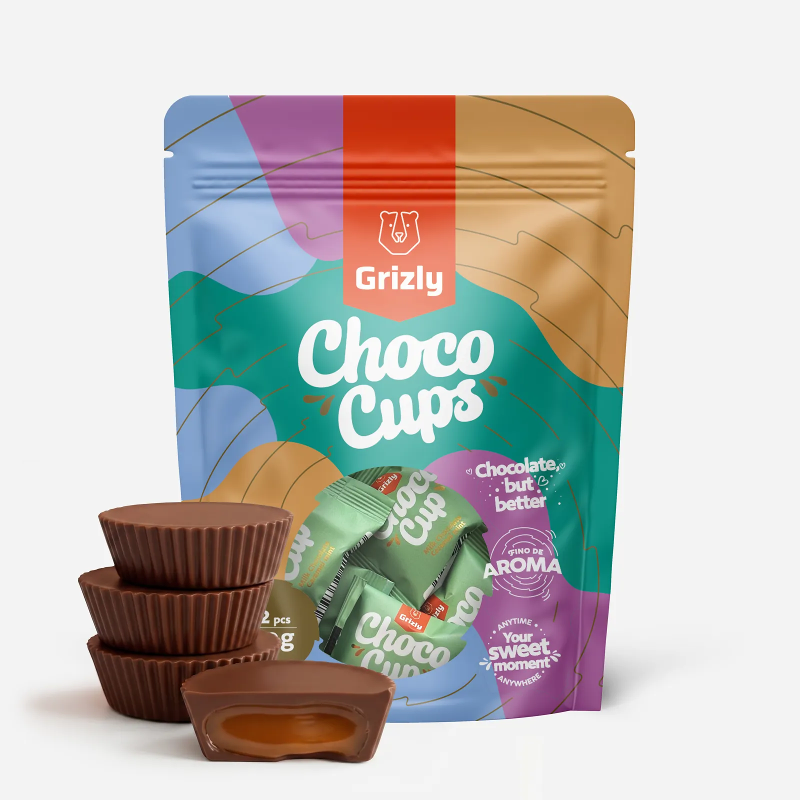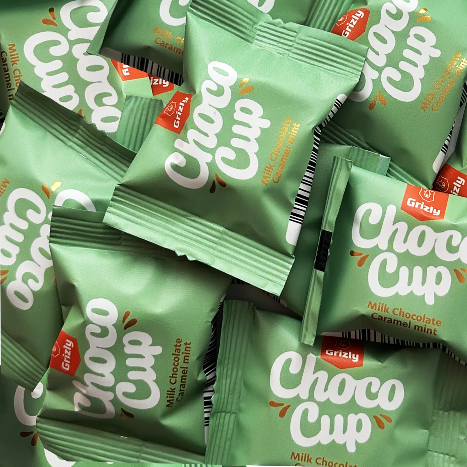 GRIZLY Choco Cup cu ciocolată cu lapte, caramel și mentă, 120 g