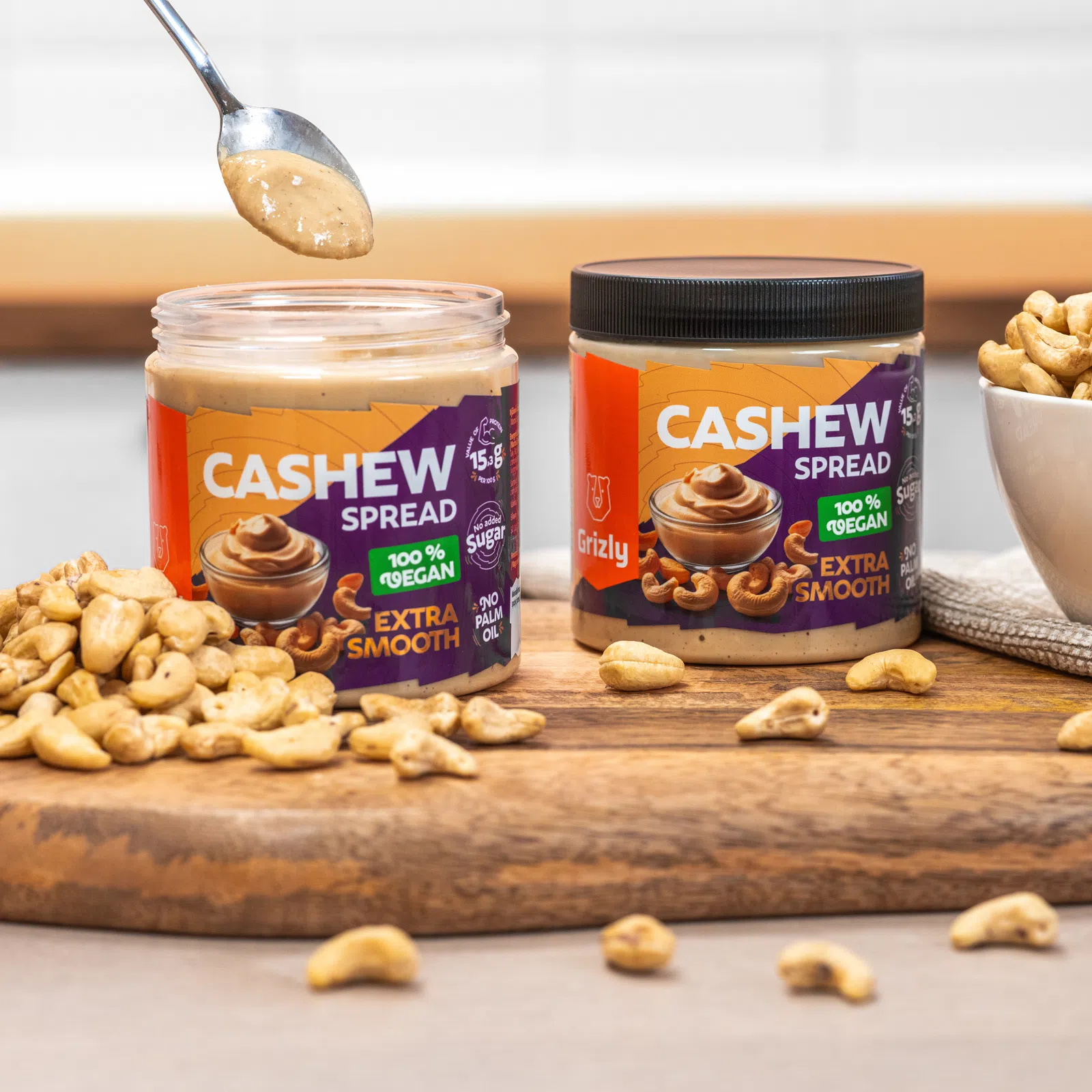 Pentru a produce crema de caju GRIZLY, folosim nuci de caju premium, care sunt prăjite și măcinate într-o textură fină. Astfel, se obține o cremă delicioasă de nuci.