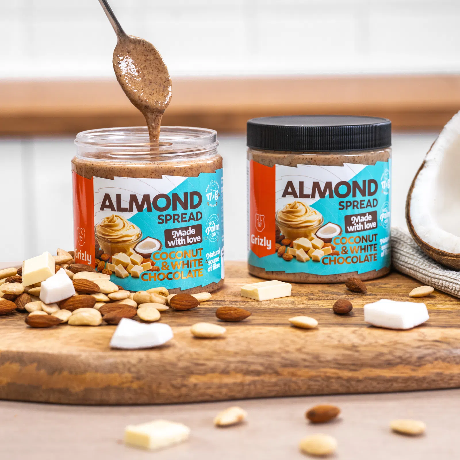 Migdalele sunt delicioase în sine, dar atunci când sunt combinate cu ciocolată albă și fulgi de cocos, rezultă o delicatesă irezistibilă. Această cremă aromată este măcinată fin și conține doar atât de multă ciocolată albă cât este necesar pentru un gust dulce echilibrat. O poți savura alături de clătite, întinde pe pâine sau adăuga în terciul de dimineață. Se potrivește perfect și cu fructele proaspete tăiate. Cu toate acestea, majoritatea dintre noi probabil că ne vom mulțumi doar cu o linguriță direct din borcan.