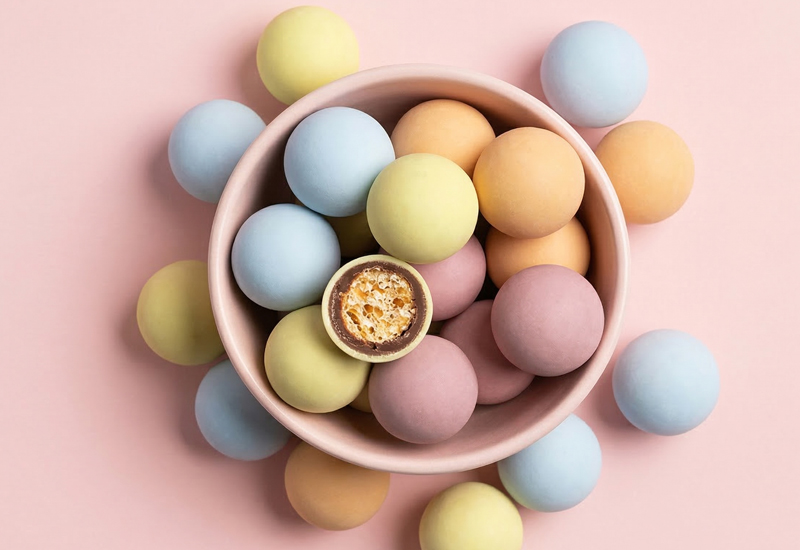 Mici biluțe pline de culoare și bucurie. Drajeurile crocante de Paște ascund o textură ușor crocantă, învelită într-un strat generos de ciocolată cu lapte și protejată de o coajă tare de zahăr. Fiecare biluță strălucește în culori și oferă combinația perfect echilibrată între crocant și finețea ciocolatei. Cadoul ideal de Paște pentru colindători, o decorațiune dulce pentru masa festivă sau o gustare plină de bucurie acasă. Pentru că Paștele are cel mai bun gust atunci când este colorat și crocant.