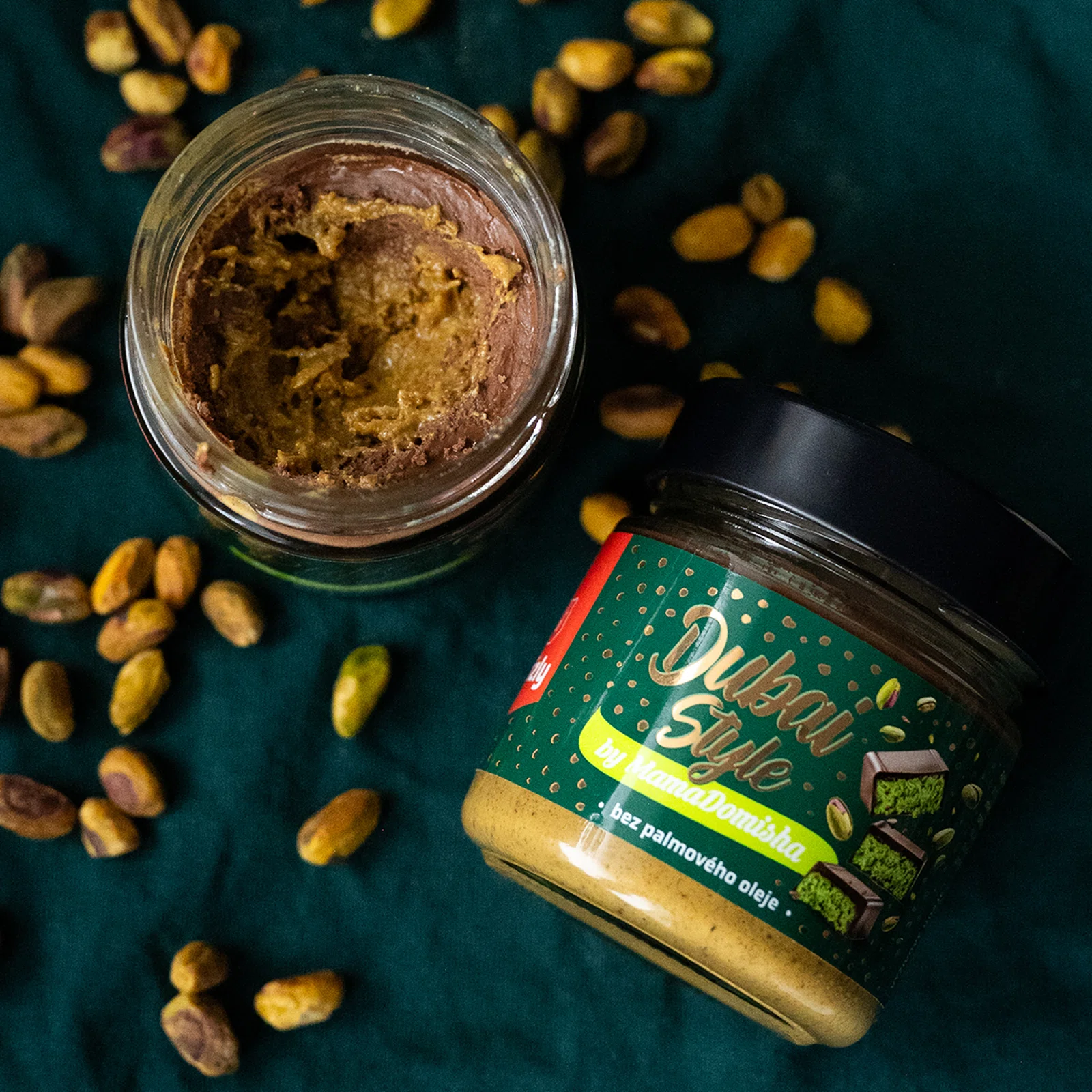 Nu trebuie să zbori până în Dubai pentru a gusta această delicatesă luxoasă inspirată de celebra ciocolată din Dubai. Rețeta cremei Dubai style spread, la fel ca și ciocolata din Dubai, se bazează pe rețete tradiționale arabe. Combină gustul bogat al ciocolatei exclusive, spuma pufoasă de fistic și crocantul kanafeh. Kunafa, cunoscută și sub numele de kanafeh sau knafeh, este renumită pentru gustul său ușor dulce și firele subțiri de aluat, care îi conferă o crocantă inconfundabilă – și exact acest lucru îl vei regăsi și în această cremă. Lasă-te purtat de combinația unică de arome și gusturi. Dar atenție – dispare rapid! Odată ce guști prima linguriță, nu te vei putea opri.