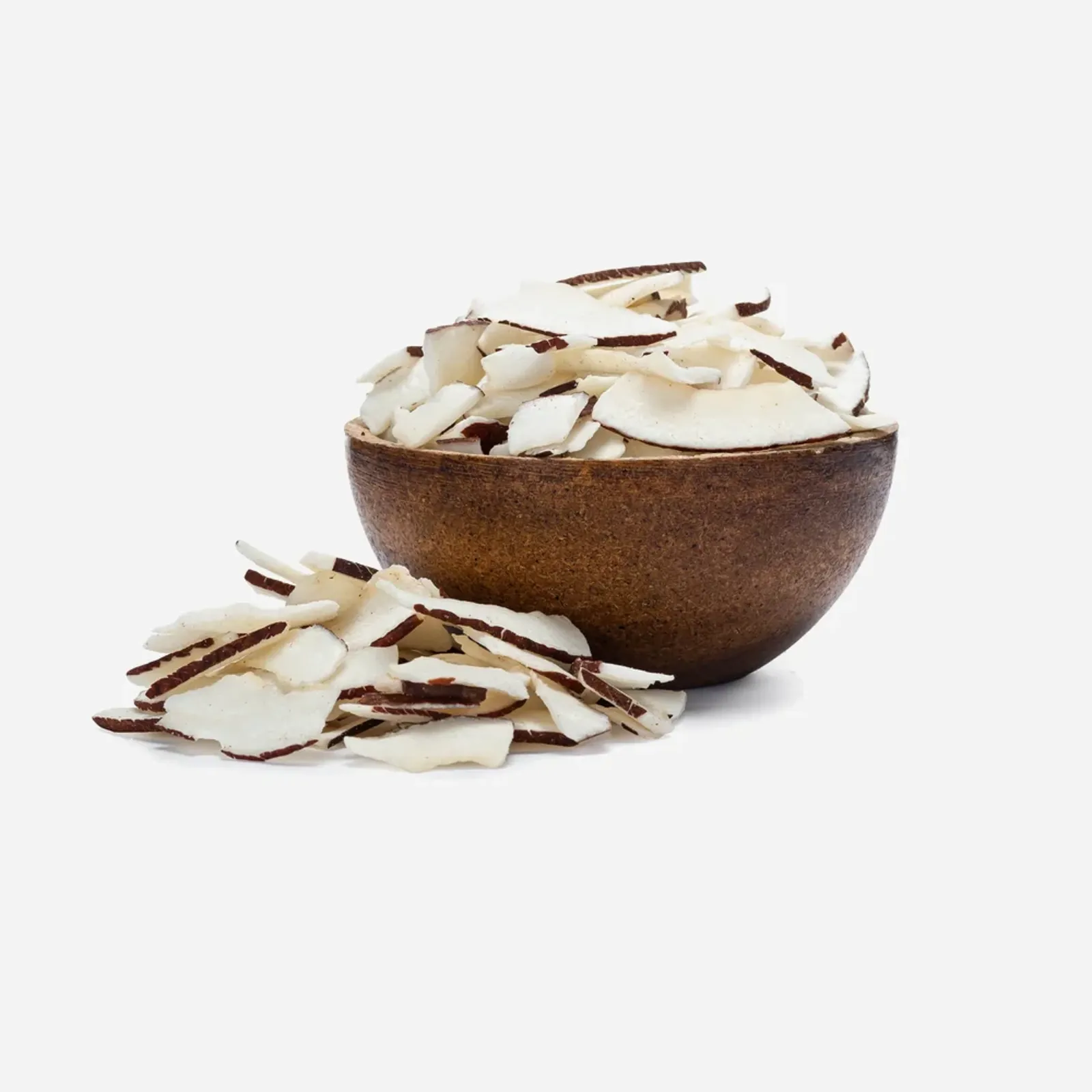 Dacă iubești cocosul în orice variantă, te provocăm să încerci și aceste fâșii subțiri cu coajă. Vei fi surprins de aroma lor intensă și de gustul deosebit de cocos. Bogate în grăsimi, sunt foarte suculente și pot fi oferite cu ușurință atât copiilor, cât și adulților, ca o gustare delicioasă. Le recomandăm, de asemenea, pentru a fi folosite creativ în prepararea mâncărurilor. Încearcă să le folosești pentru a decora deserturi, fie că sunt coapte sau crude. Adaugă-le în granola homemade, presară-le pe terciul de dimineață sau creează-ți propriul amestec cu nuci și fructe uscate. Orice idee ai avea, nu ezita să experimentezi.