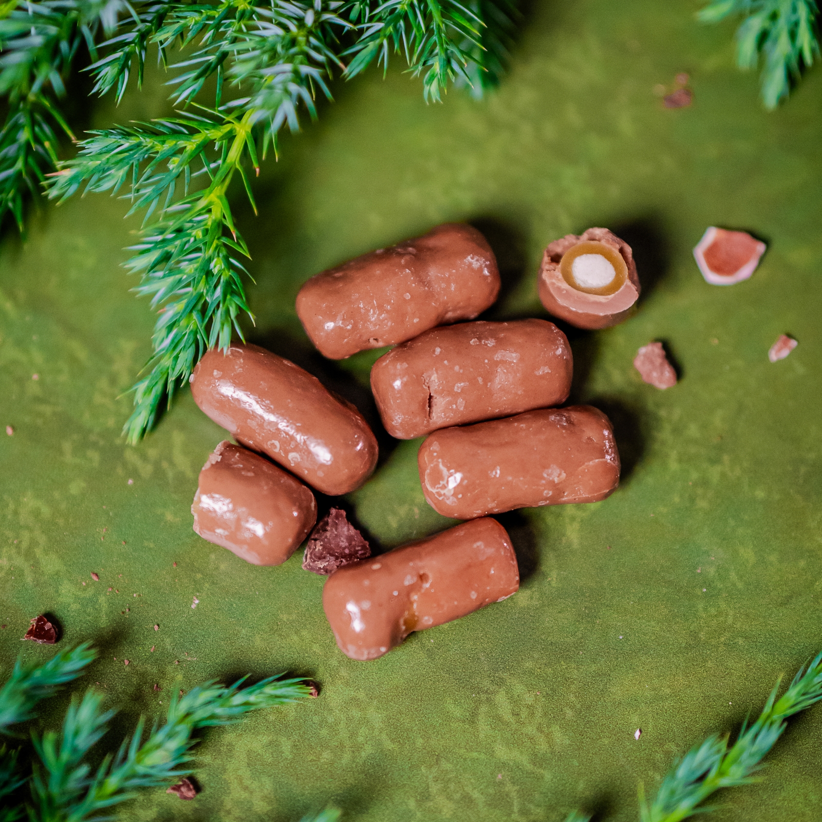 Bucurii de Crăciun în toată splendoarea lor! Trebuie să încerci bezele noastre cu aromă de piersică, acoperite cu ciocolată cu lapte. Doar așa vei înțelege cât de bune sunt.