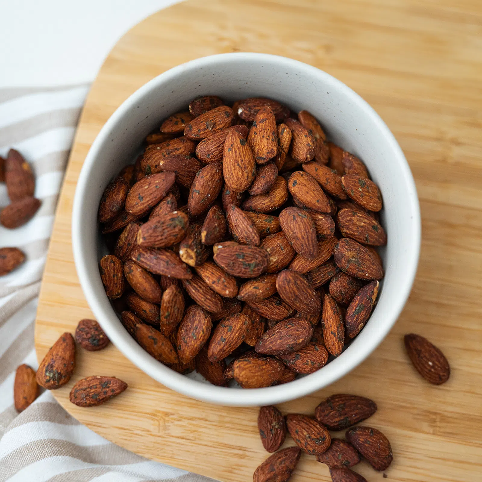 - o combinație delicioasă de migdale prăjite cu un gust intens de condimente