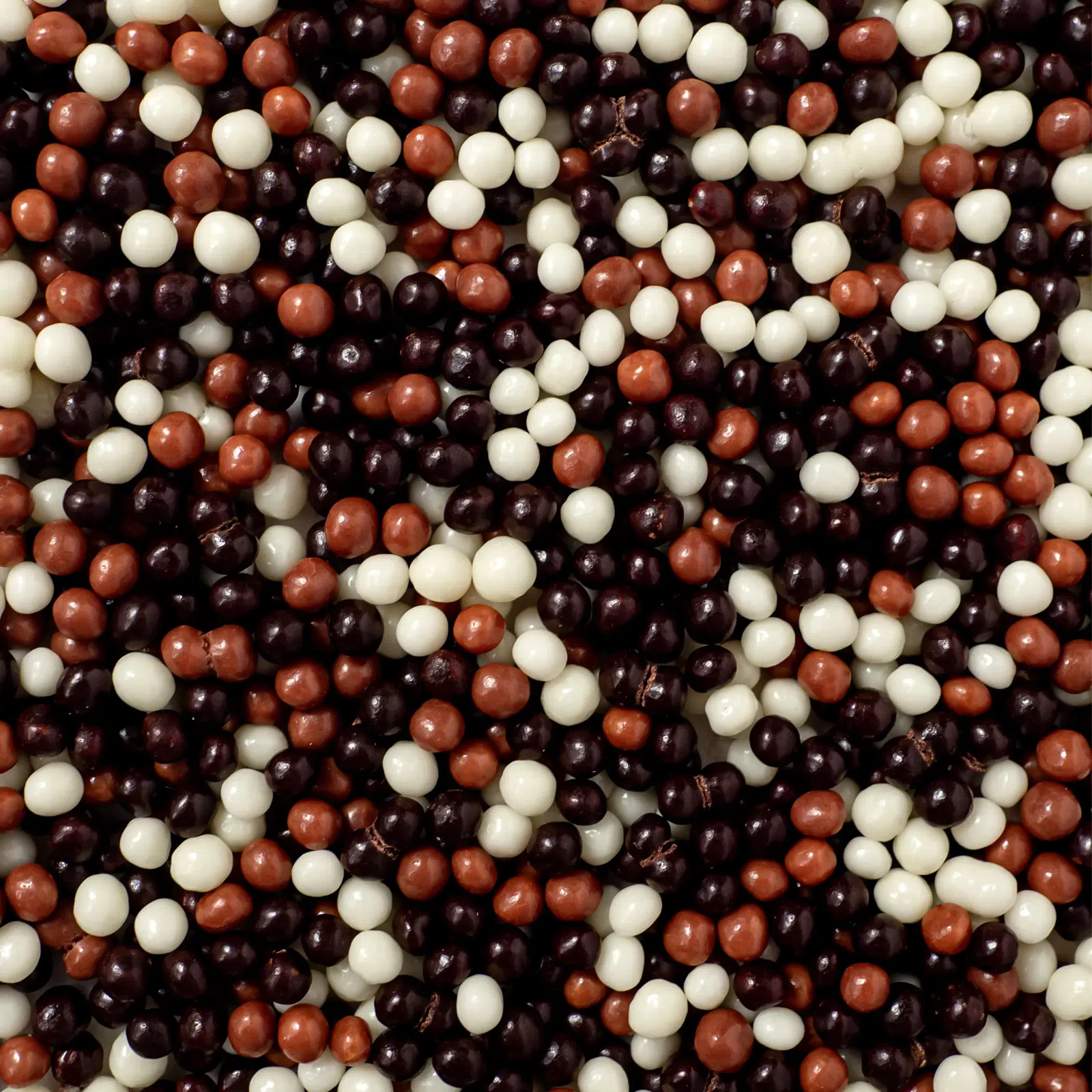 Biluțe mici de cereale acoperite cu ciocolată cu lapte, neagră și albă — le vei adora de la prima gustare! Sunt perfecte când ți-e poftă de ceva dulce sau cauți o decorațiune pentru deserturi, torturi, prăjituri sau înghețată. Poți să le adaugi și în iaurt sau în muesli de dimineață. Pe scurt, o mică delicatesă care aduce o mare bucurie.