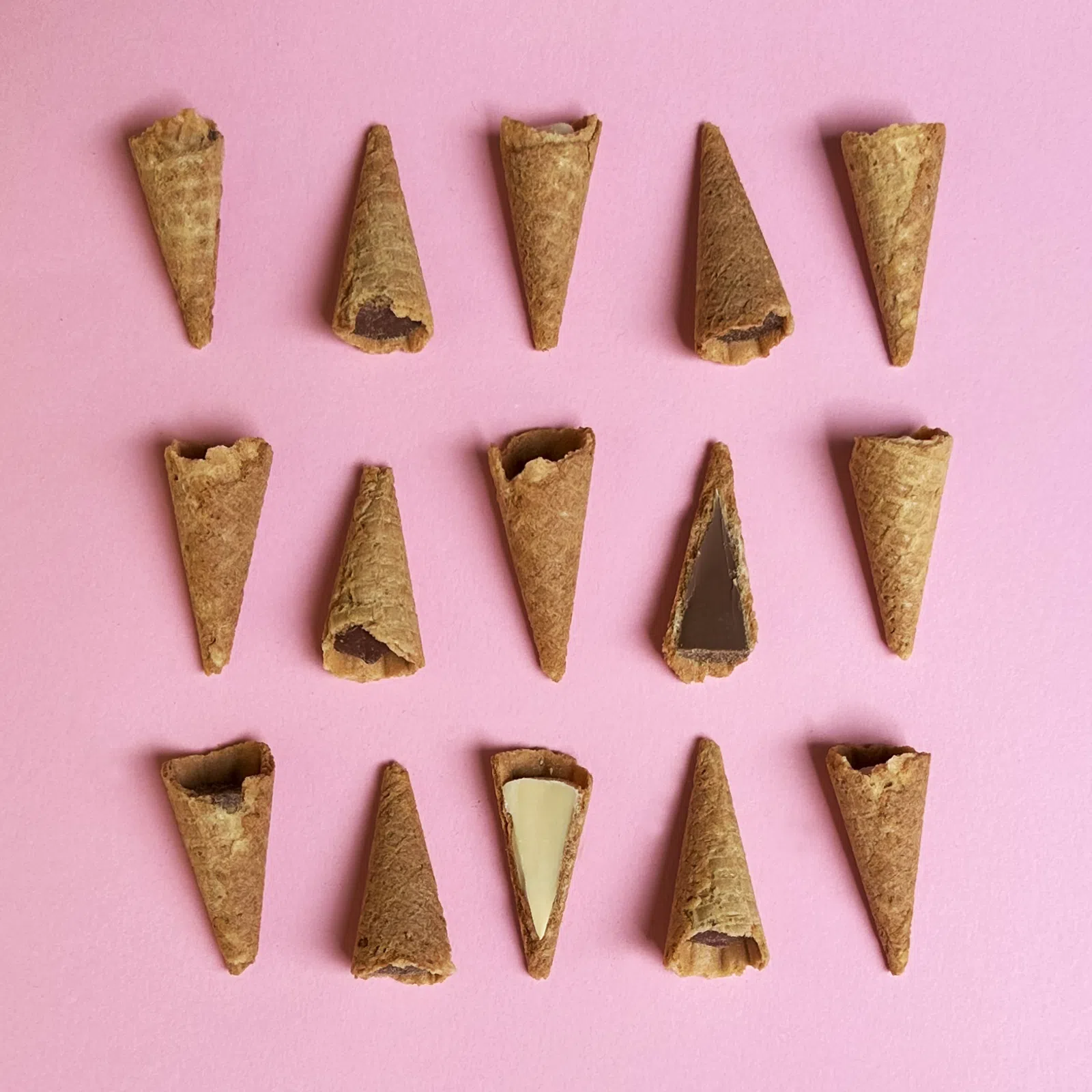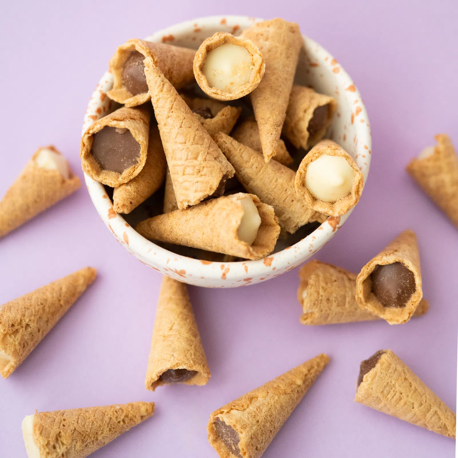Doar ceva mic de ronțăit atunci când te lovește brusc pofta de dulce. Exact pentru asta sunt perfecte mini cornetele noastre cu caramel sărat. Le poți imagina ca vârful cornetului de înghețată, partea aceea delicioasă care rămâne la final și pe care toți o așteaptă. Iar pentru că ne place să ducem lucrurile bune la perfecțiune absolută, am umplut aceste mici cornete până la margine cu caramel sărat și am pregătit o pungă plină. Nu te sfii – mănâncă atât cât dorești, pentru că aceste cornete sunt făcute din caramel de calitate. În plus, în compoziția lor nu se regăsește ulei de palmier. Aroma de caramel sărat nu este singura – avem și variante cu ciocolată cu lapte, ciocolată neagră și ciocolată albă.