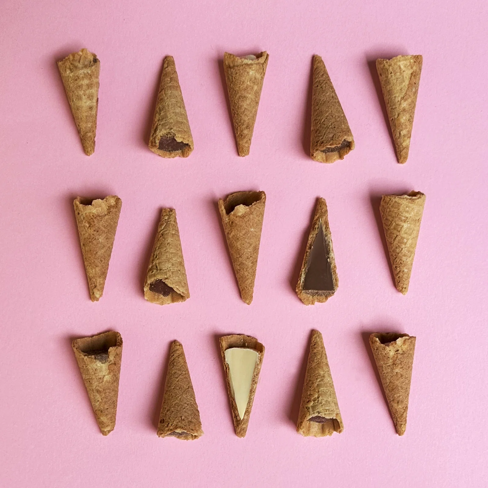 Doar ceva mic de ronțăit, când te apucă pofta de dulce. Exact asta oferă mini cornetele noastre cu ciocolată albă. Și pentru că ne place să îmbunătățim lucrurile bune până la perfecțiunea absolută, am umplut aceste cornete mici până la refuz cu ciocolată albă și am pregătit un sac întreg. Nu trebuie să te reții, mănâncă cât vrei, cornetele sunt fabricate din cacao sustenabilă și ciocolată de calitate. În plus, în compoziția lor nu vei găsi ulei de palmier. Aroma de alune nu este singura – avem și cornete cu ciocolată cu alune și ciocolată cu lapte.