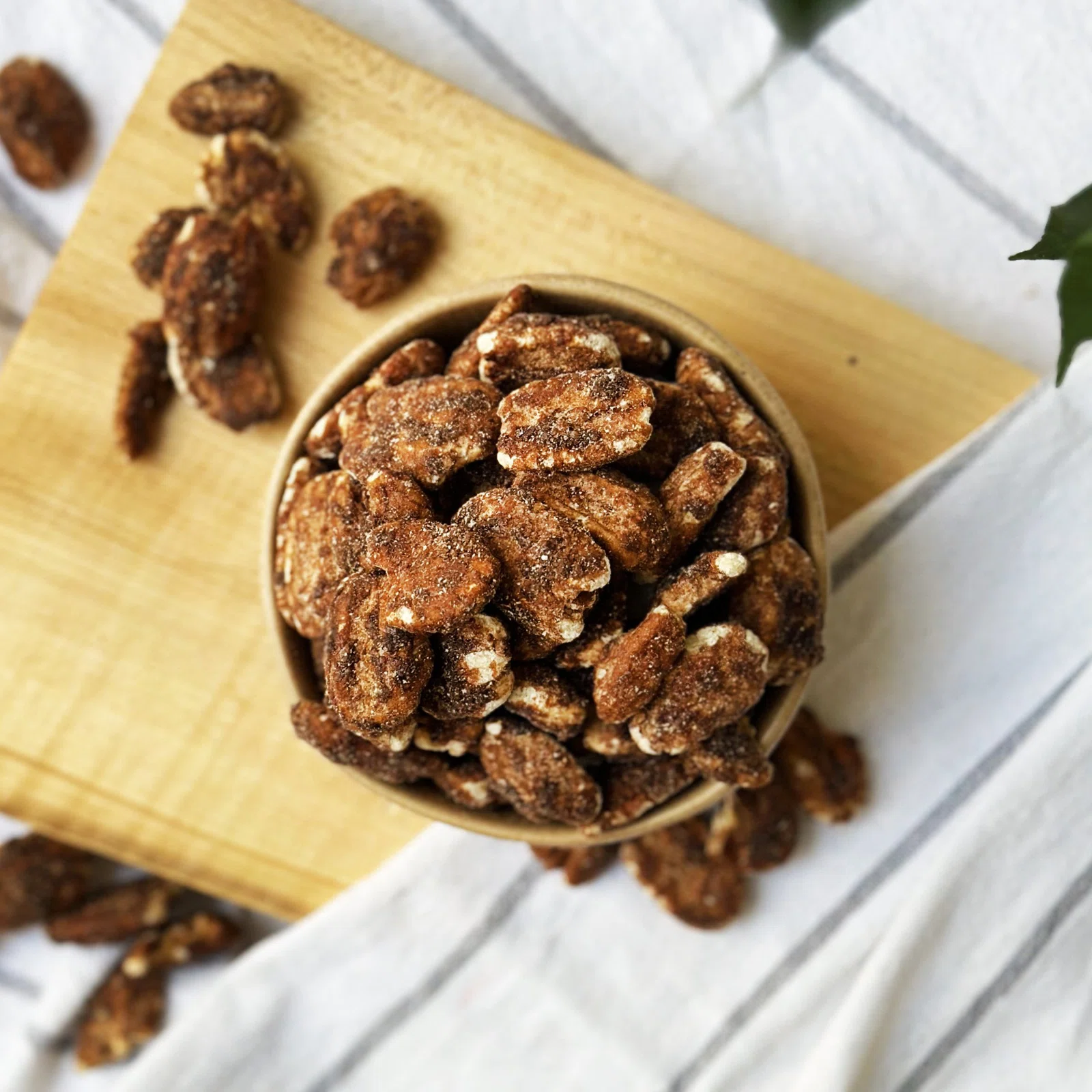 Ingrediente: nuci pecan 76 %, zahăr, scorțișoară măcinată 3,5 %, sare de mare 2 %