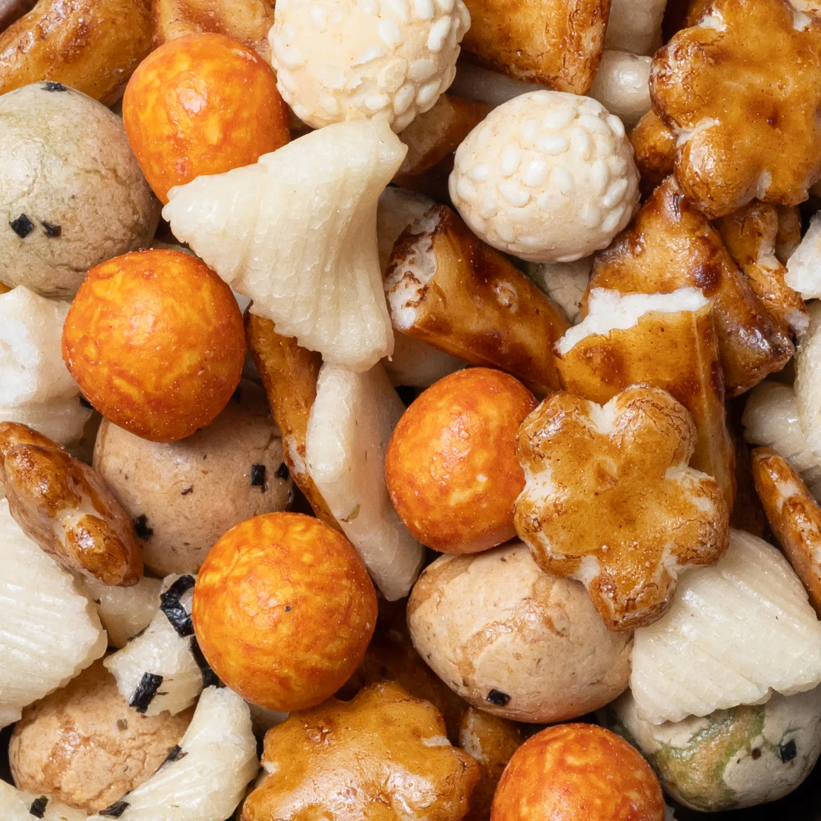 | Ingrediente: | orez 46 %, făină de grâu, arahide 12 %, zahăr, amidon de porumb, sos de soia (apă, soia, sare, grâu), semințe de susane, amidon de tapioca, sirop de malț, maltodextrină, coloranți: E150a, E160c, E100; sare, agent de afânare: E503; alge marine. |