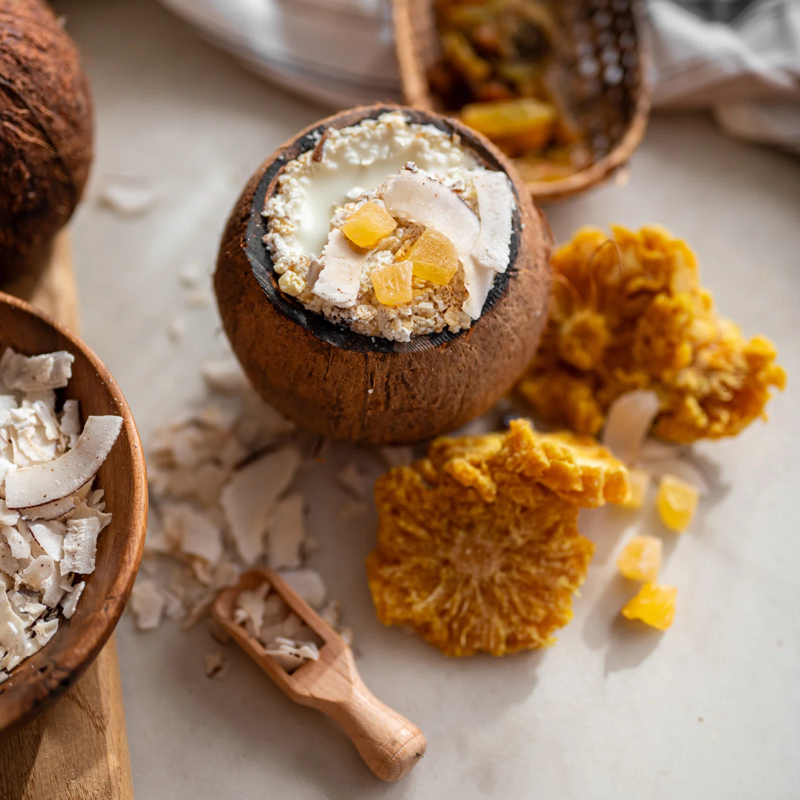 Mic dejun ca într-un paradis exotic. Așa te vei simți când dimineața îți vei pregăti terciul nostru de ovăz fără gluten cu aromă de cocos și ananas. Este gata în doar câteva minute.