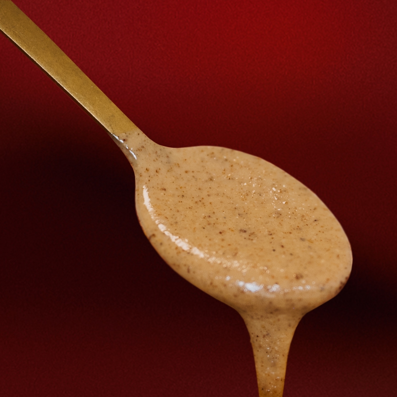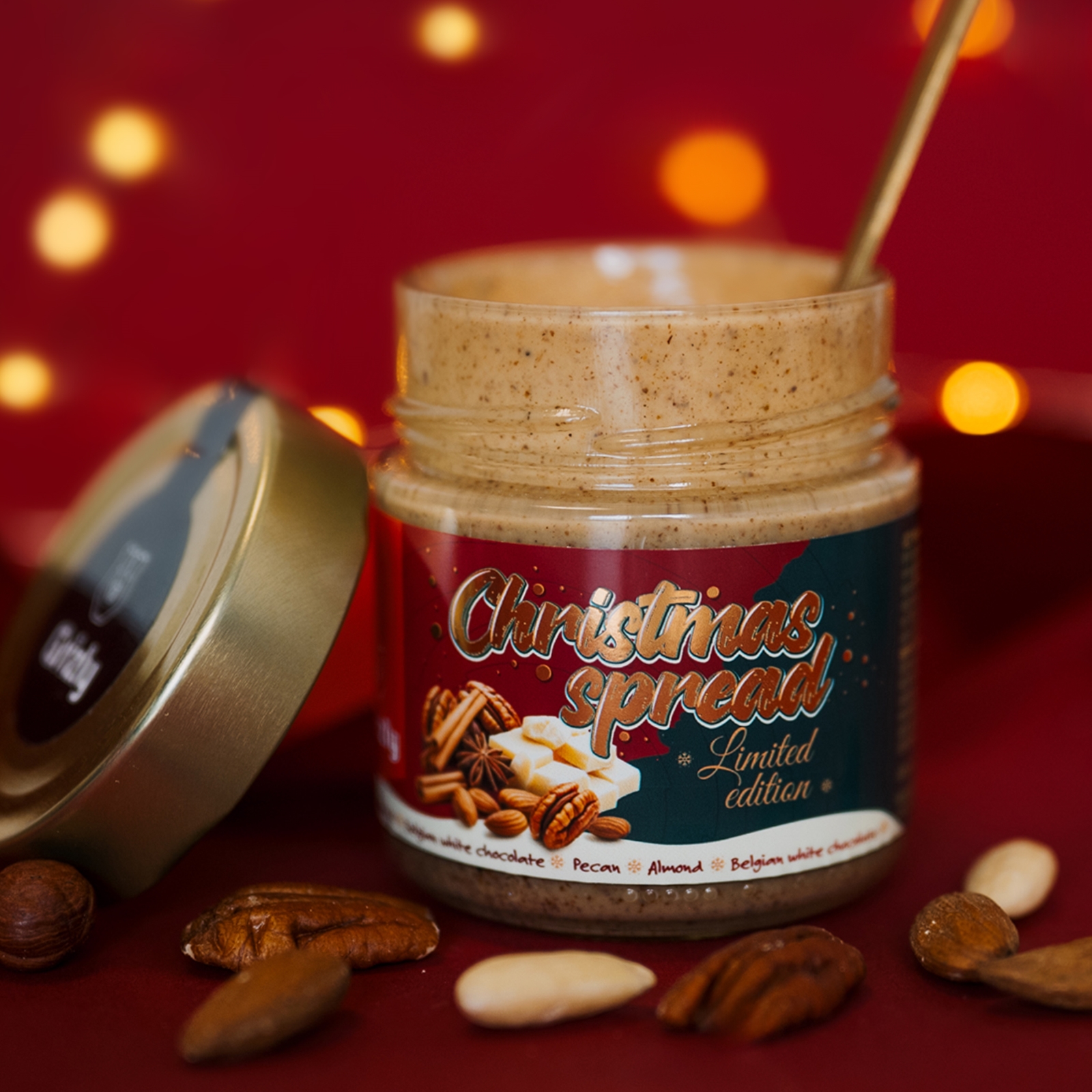 Această ediție limitată de Crăciun este făcută doar din alune de pădure prăjite la uscat, migdale prăjite, excelentă ciocolată belgiană cu caramel și nuci pecan prăjite. Am adăugat un praf de mirodenii pentru turtă dulce și a rezultat o cremă de Crăciun fabuloasă, cu gust de sărbătoare!
