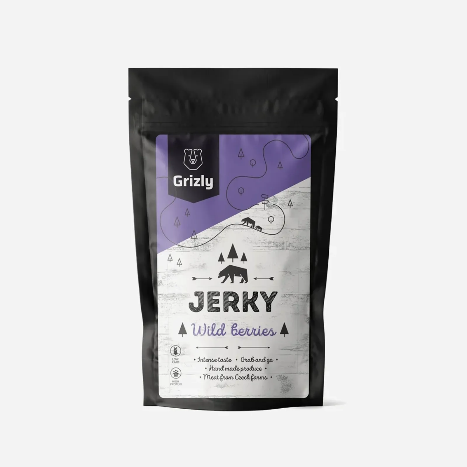 GRIZLY jerky cu aromă de fructe de pădure sălbatice este o sursă excelentă și delicioasă de proteine, pe care o veți avea mereu la îndemână.