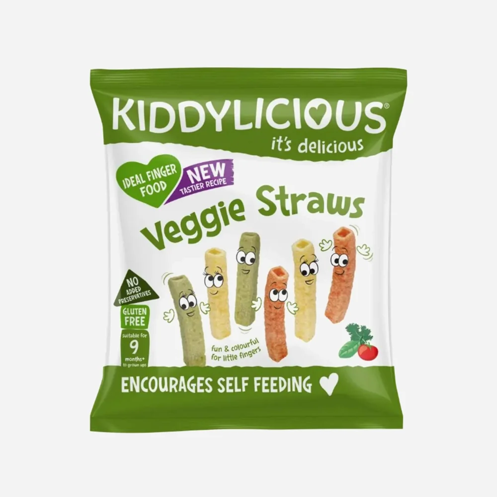 Bețele delicioase de legume Kiddylicious sunt gustarea ideală pentru copii de la 9 luni. Au interior gol și o formă practică de tub. Sunt gustoase și ușor de prins de către copii. Sunt ajutoare ideale pentru exersarea hrănirii independente și coordonării mână-gură. O gustare distractivă și gustoasă pentru bebeluși, copii mici și preșcolari.